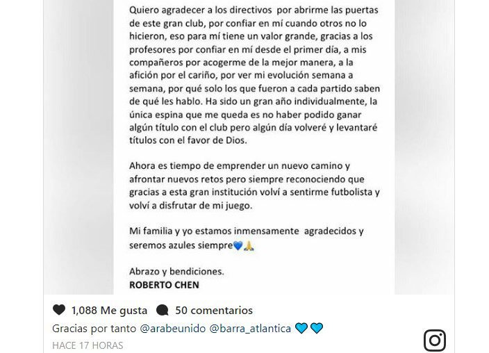 Aun así trascendió que el defensa panameño Roberto Chen, se integrará a la Liga Deportiva Alajuelense, a un año de préstamo tras disputar el torneo apertura 2017 de la LPF con el Deportivo Árabe Unido de Colón.