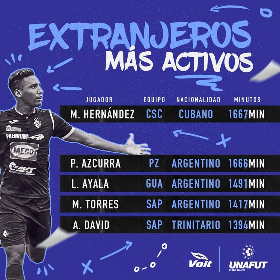 San José, 17 de abril, (elmundo.cr)- La Unafut publicó esta mañana en sus redes sociales los extranjeros más regulares del Torneo de Clausura 2019 entre los cuales destaca el delantero cubano Marcel Hernández quien ha sobresalido en el Club Sport Cartaginés.
