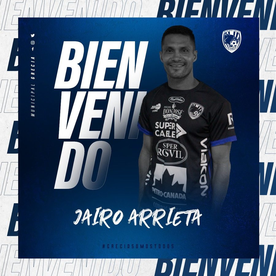 Alajuela, 25 may (elmundo.cr) – Hace escasos minutos, el Municipal Grecia informó que llegó a un acuerdo con el delantero Jairo Arrieta para reforzar al club de cara al torneo venidero.