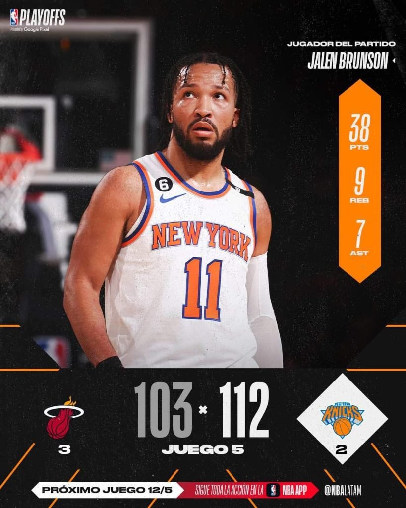 Redacción, 10 mayo (el mundo.cr) La fanaticada de New York ha sido testigo, en el Madison Square Garden, de cómo los Knicks reviven en la serie semifinal de playoffs de la NBA, tras vencer al Heat de Miami que está a un juego de las finales de conferencia.