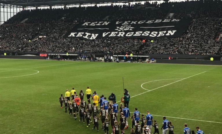 Instantes antes de iniciar el encuentro ante el Darmstadt -por la segunda división de fútbol alemán-, el estadio mantuvo un minuto de silencio en recuerdo a las víctimas del genocidio perpetrado por los nazis, y todas las gradas se cubrieron de banderas, paños y pancartas negras, muchas de ellas con nombres de las personas asesinadas.