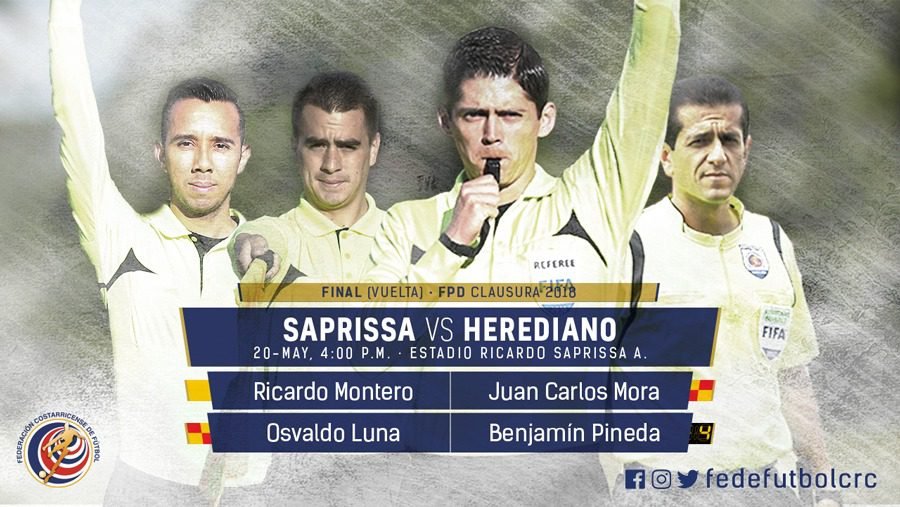 San José, 18 may, (elmundo.cr)- El próximo domingo el Club Sport Herediano y el Deportivo Saprissa jugaran la final nacional en el Estadio Ricardo Saprissa donde Ricardo Montero tendrá el deber de arbitrar el encuentro como juez central según lo asignado por a Comisión de Arbitraje de la Federación Costarricense de Fútbol (Fedefutbol).