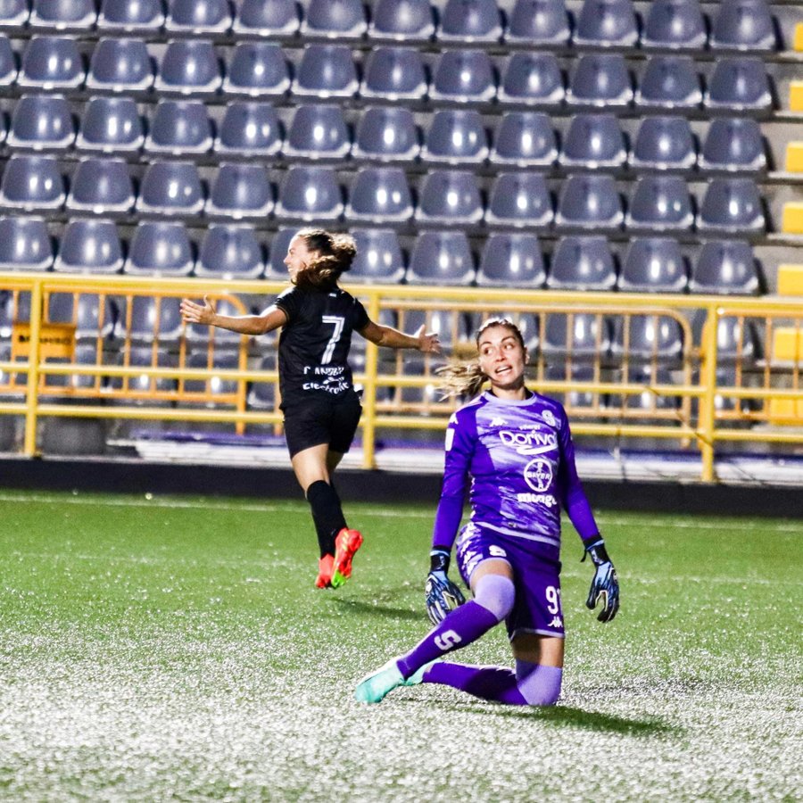 El primer periodo se desarrolla con un dominio total de las albinegras y un equipo morado que no se encontraba, y resiente la falta de protagonismo de sus figuras de medio campo como Gloriana Villalobos y Mariela Campos.