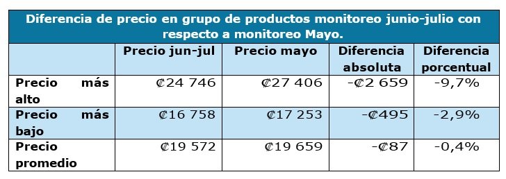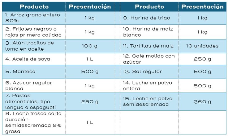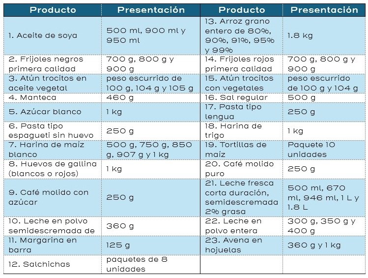 La información se recopiló del 25 de junio al 16 de julio e incluye los precios de los siguientes 23 productos con sus respectivas presentaciones:
