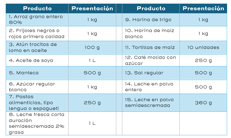 Adicionalmente, se evaluaron los precios de una canasta compuesta por los siguientes 15 productos, encontrados en 171 de los 347 comercios analizados: