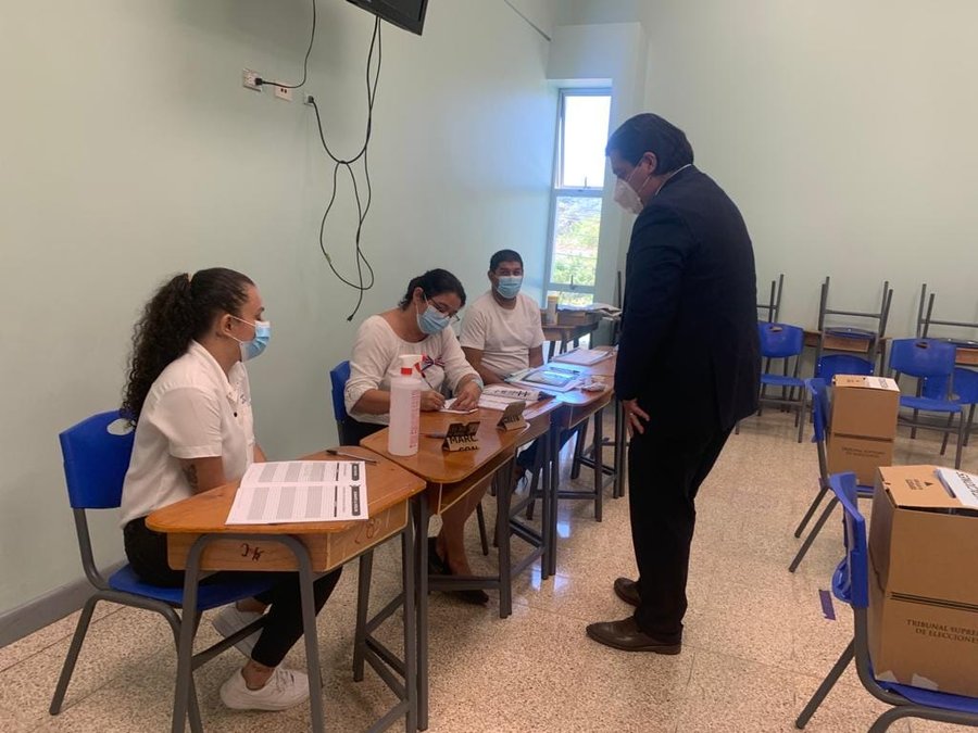 Mena votó alrededor de las 10:00 am en la Escuela Rogelio Fernández Güell.