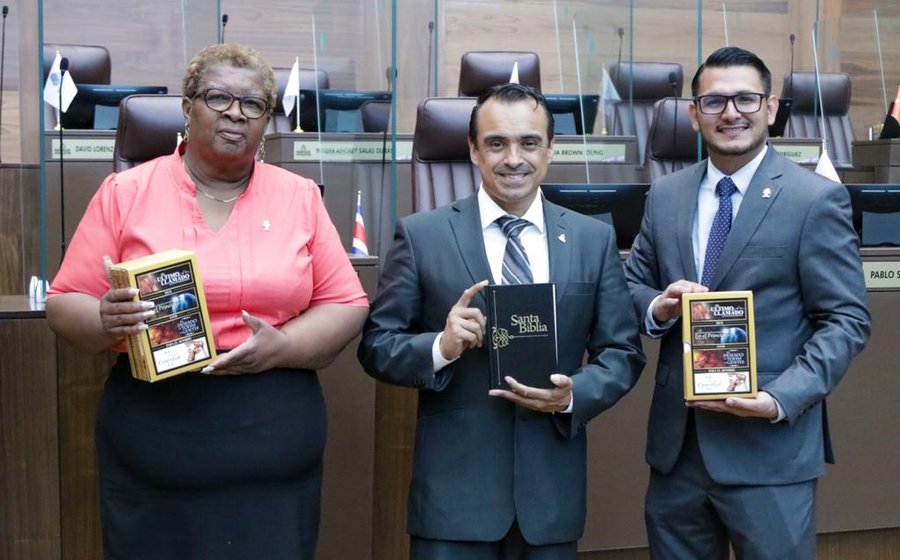 San José, 30 set (elmundo.cr) – El pastor de la Iglesia Adventista, Royner Ramírez, le regaló a cada uno de los diputados de la República una biblia, una colección de libros que son comentarios acerca de la Biblia y un libro sobre salud, en el marco de la celebración del mes de la Biblia.