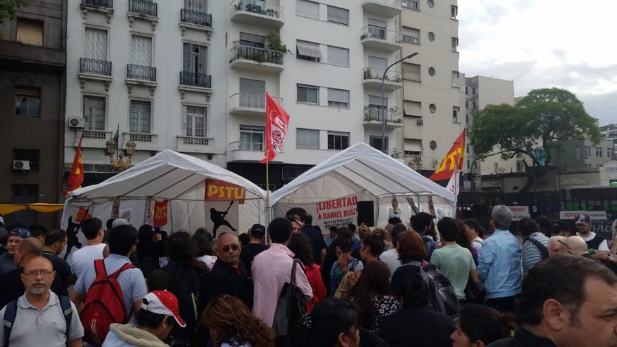 Al cierre de la noche de este jueves, las organizaciones de la Confluencia realizaron un acto central en la Plaza, donde entre otras reivindicaciones, exigieron la libertad para Daniel Ruiz; militante del argentino Partido Socialista de los Trabajadores Unificado (PSTU).
