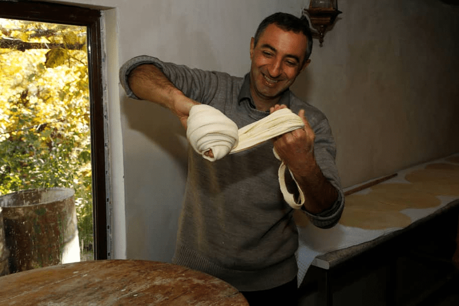 Zaza asegura que su abuelo —del que aprendió las técnicas tradicionales de panificación— vivió hasta los 100 años. La robusta constitución del anciano se refleja en la naturaleza del tenaz tsiteli doli, que prospera en esta región del Cáucaso meridional, a pesar de la pobreza de sus suelos y del duro clima de inviernos muy fríos y veranos secos y calurosos.
