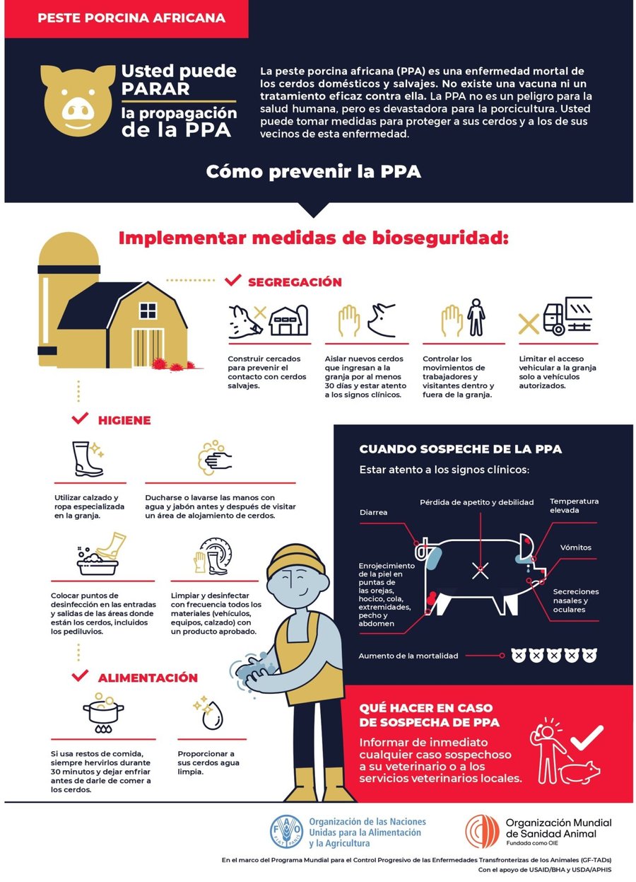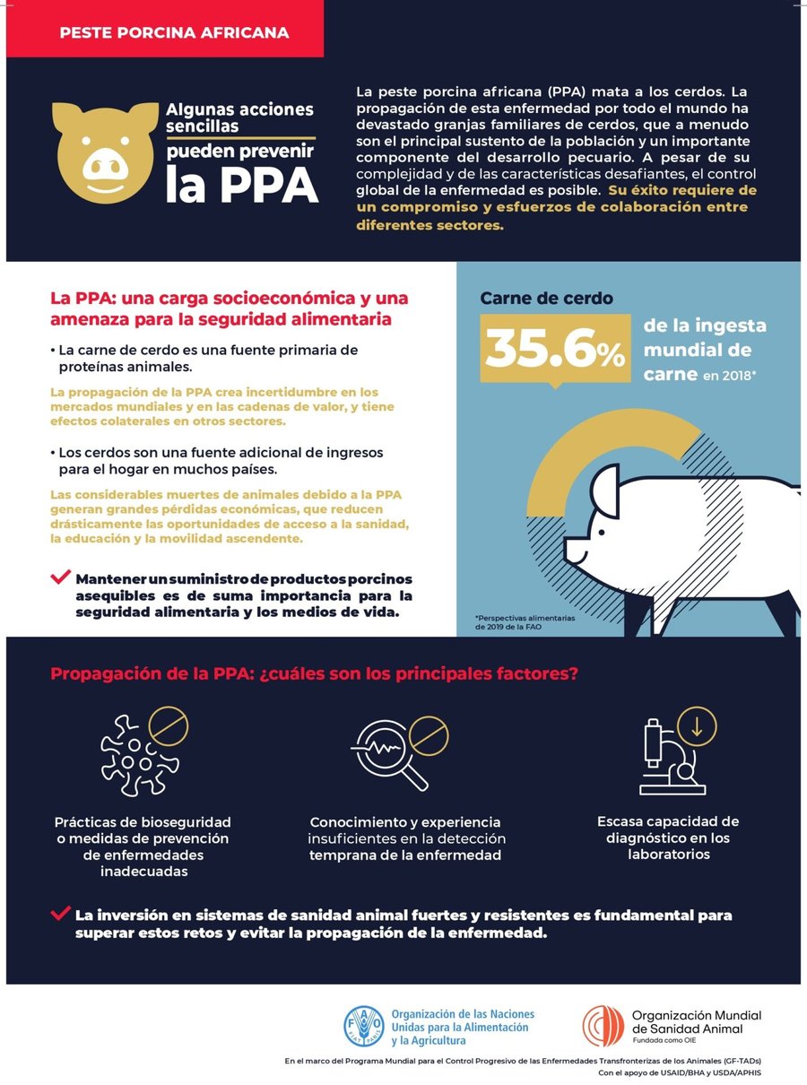 La PPA es una enfermedad viral grave que afecta a los cerdos domésticos y silvestres; la misma no representa un riesgo para la salud humana, sin embargo, es una grave amenaza para la economía agropecuaria y la ganadería porcina del continente y del mundo.
