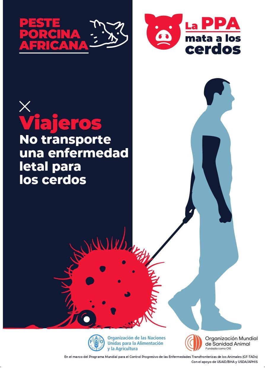 Por otro lado, el Dr. Neira hizo un llamado a los turistas a no llevar a sus países productos de origen porcino como salame y jamón, porque podrían contener el virus, “bajo circunstancias de una importación informal e ilegal, esos productos de una u otra manera pueden llegar a nuestros países, por ejemplo en un crucero que descargue desechos, en aviones con alimentos informalmente importados, el alimento llega y de una u otra manera puede llegar a la población porcina del país”.