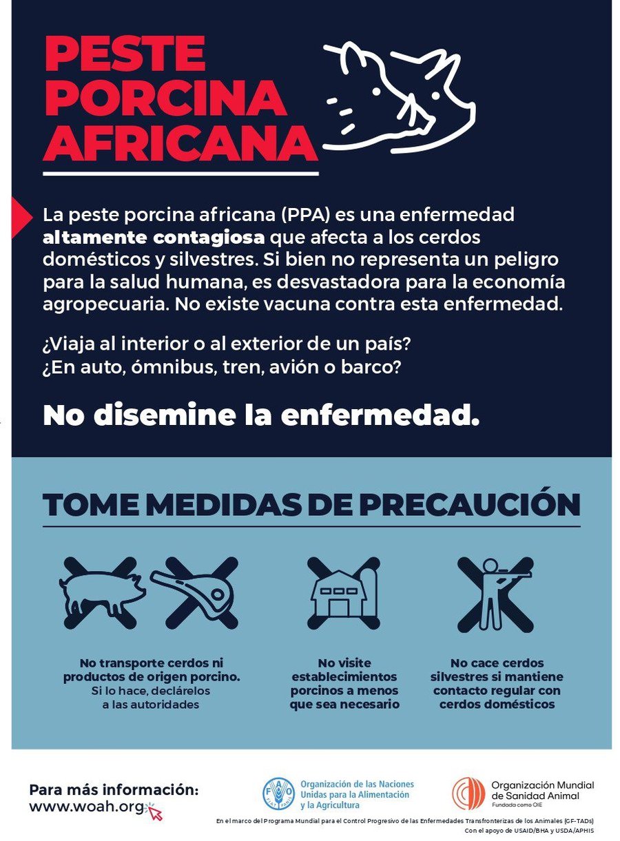 “El virus de la PPA ya está en las Américas, está en la isla de la Española, en Haití y en República Dominicana, entonces está muy cerca de nosotros, incluso de algunos países esta a menos de 100 km, lo que deben hacer los diferentes gobiernos sobre todo aquellos que están cerca del foco es reforzar las medidas de bioseguridad y también reforzar las medidas informativas de que hay educación respecto al tema, que podría llegar a los países por una persona que no sabe del riesgo de traer un alimento importado ilegalmente”, concluyó.