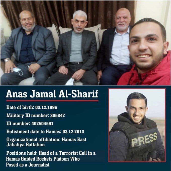 Según el portavoz (res.) de las FDI, Roni Kaplan, Al-Sharif era jefe de célula de Hamás y operaba bajo la cobertura de periodista, promoviendo planes de lanzamiento de cohetes contra civiles israelíes y contra las propias fuerzas militares.