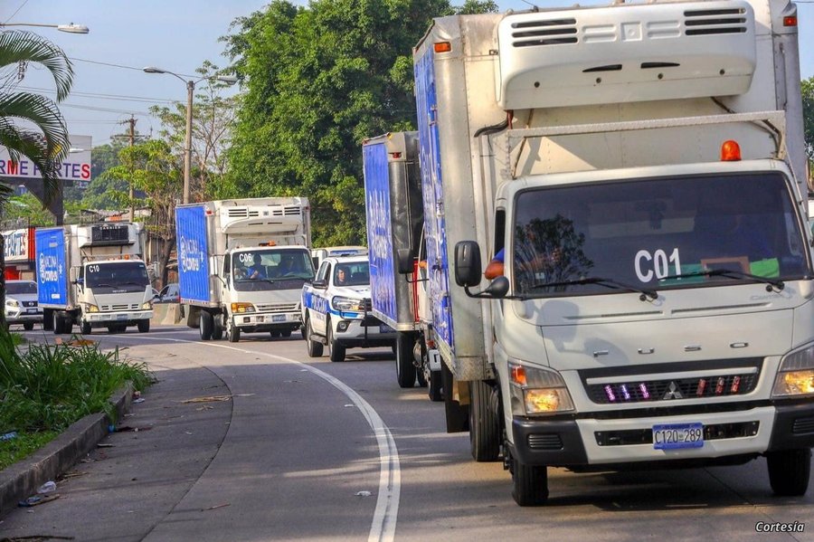 Los 14 camiones con las vacunas fueron entregados por las autoridades salvadoreñas de sanidad en la aduana de El Poy, en el occidente de Honduras, a los alcaldes, quienes contaron con un dispositivo de seguridad para su traslado.