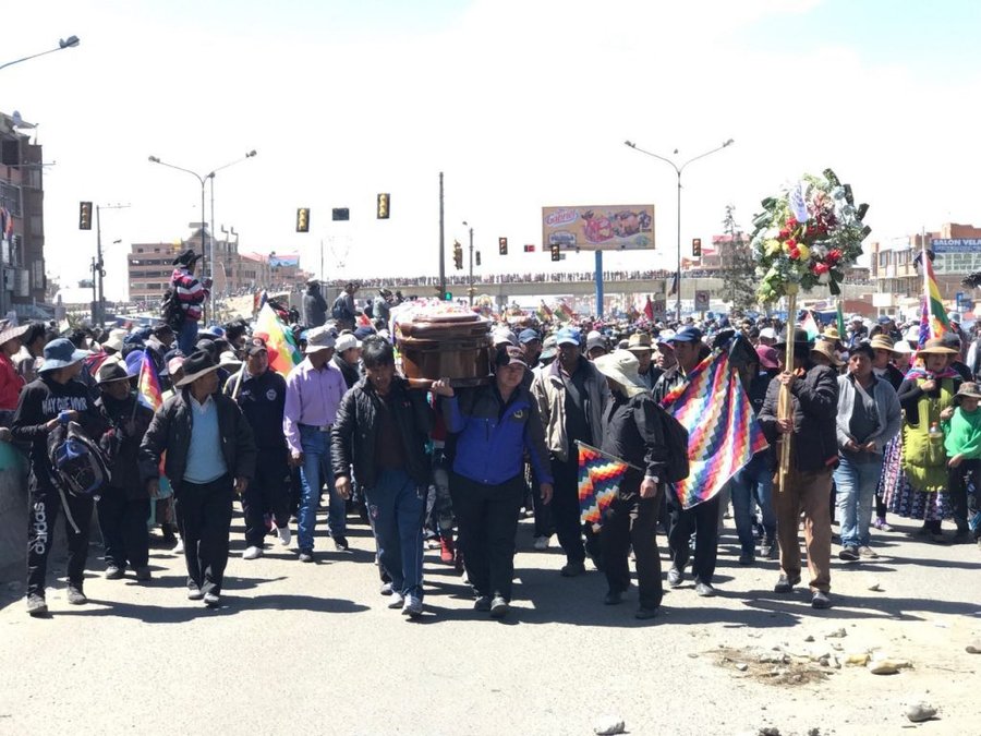 La multitud se moviliza desde la ciudad de El Alto hacia la sede de gobierno en La Paz cargando los féretros de las personas asesinadas por las fuerzas de seguridad del gobierno de Jeanine Añez.