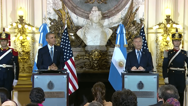 Por su parte, Obama señaló que “Estados Unidos está listo para trabajar con la Argentina en su transición histórica”, y además confirmó la desclasificación de archivos de la dictadura. “Estamos muy agradecidos por el gesto”, le respondió Macri. “Si nosotros dialogamos con los otros países, con solidaridad y respeto, los países colaboran con nuestros pedidos”, agregó.