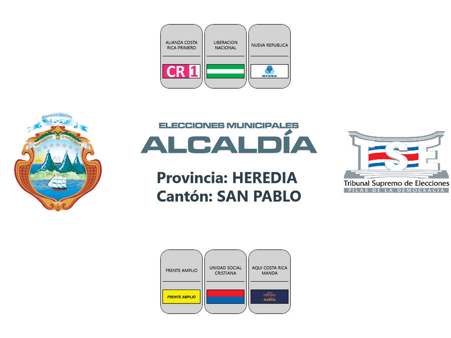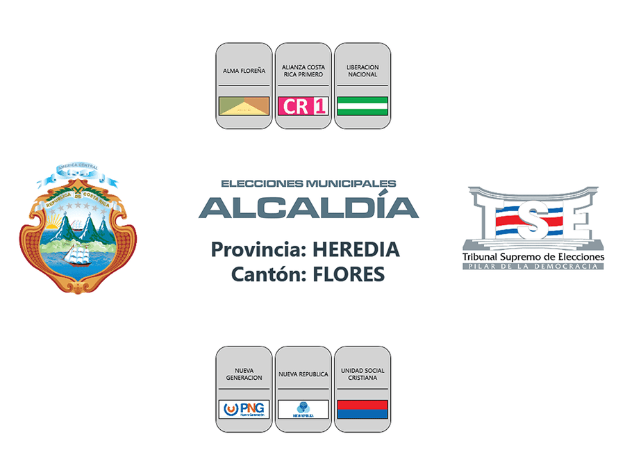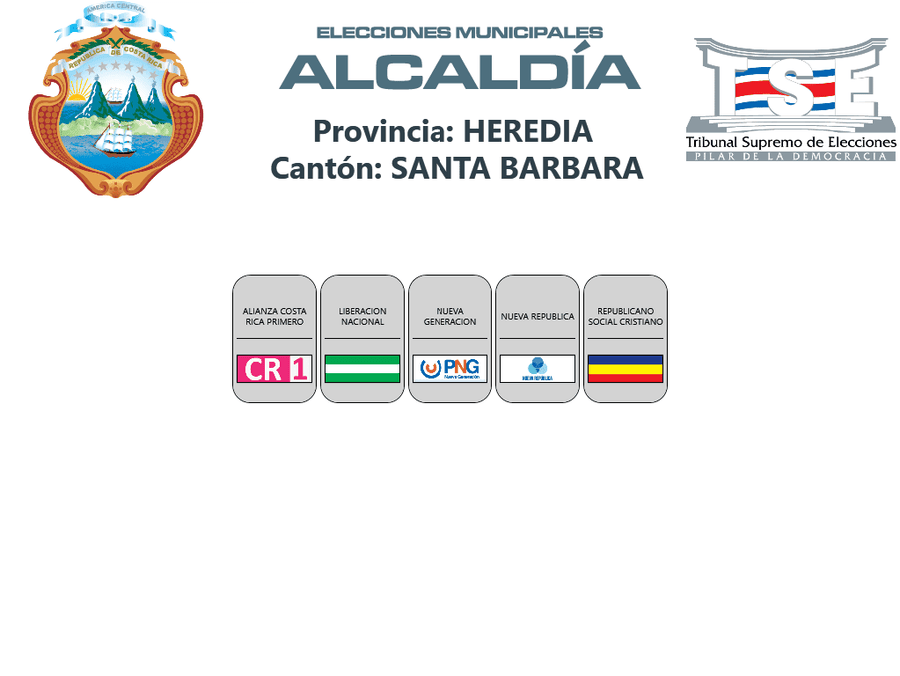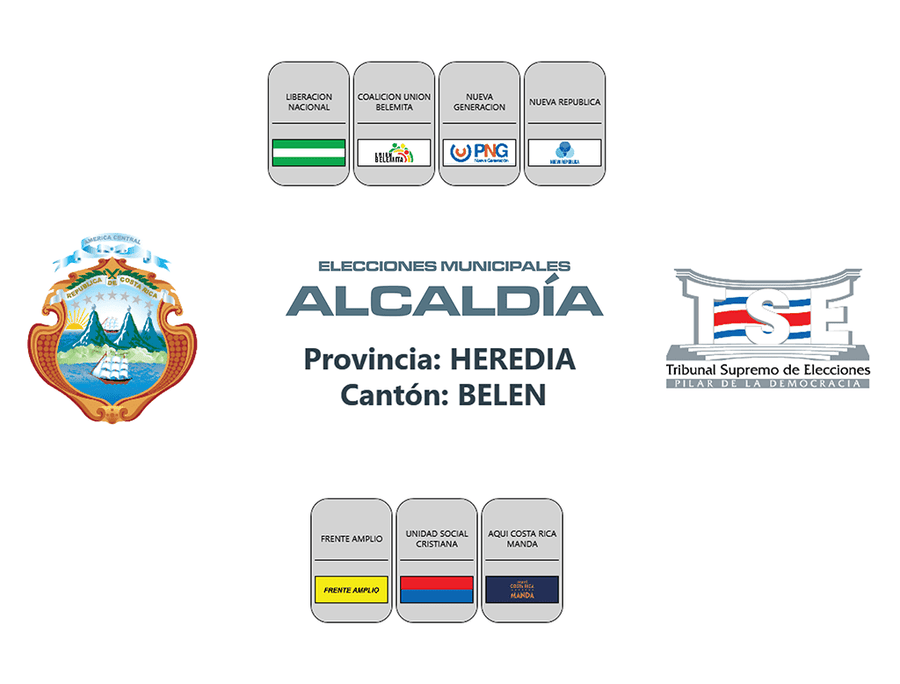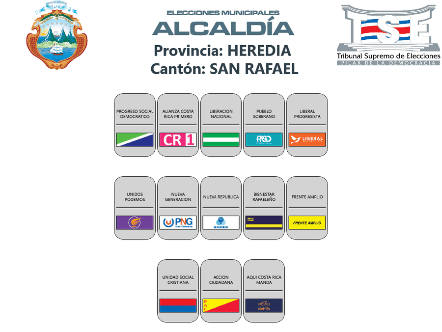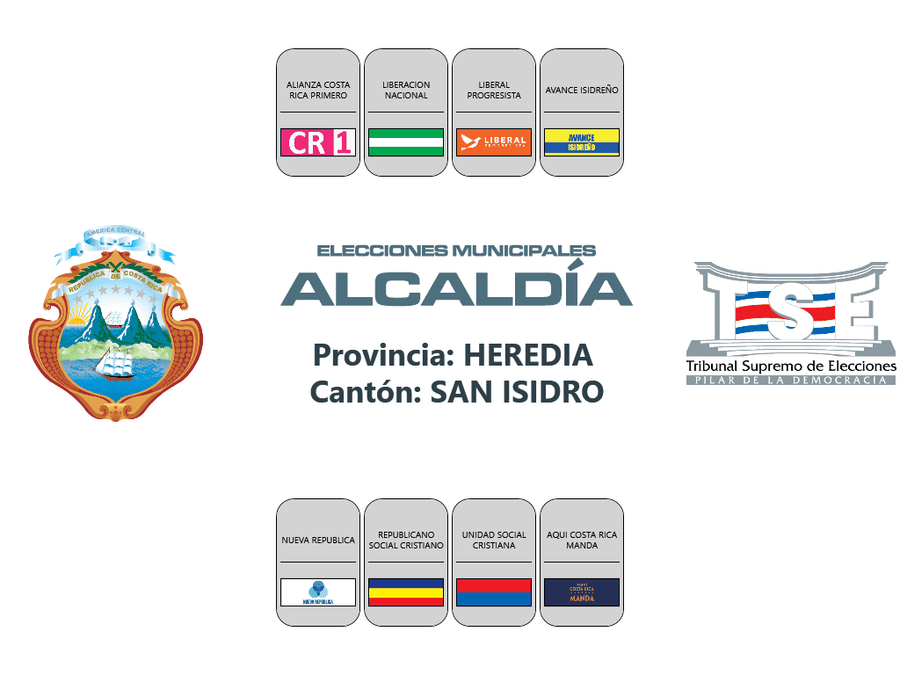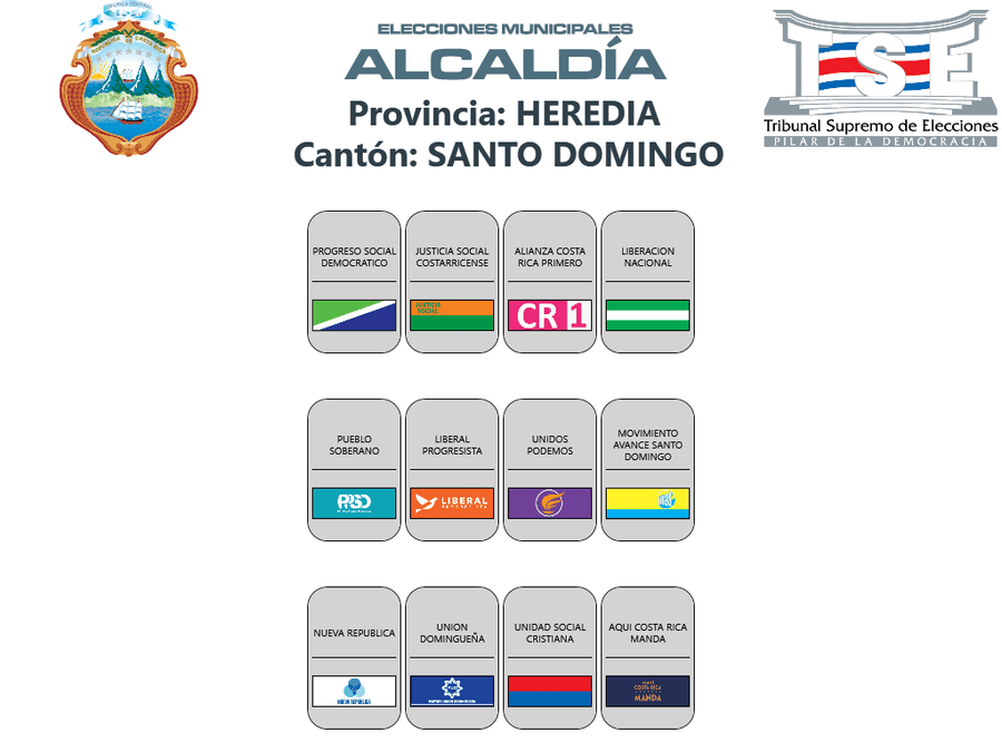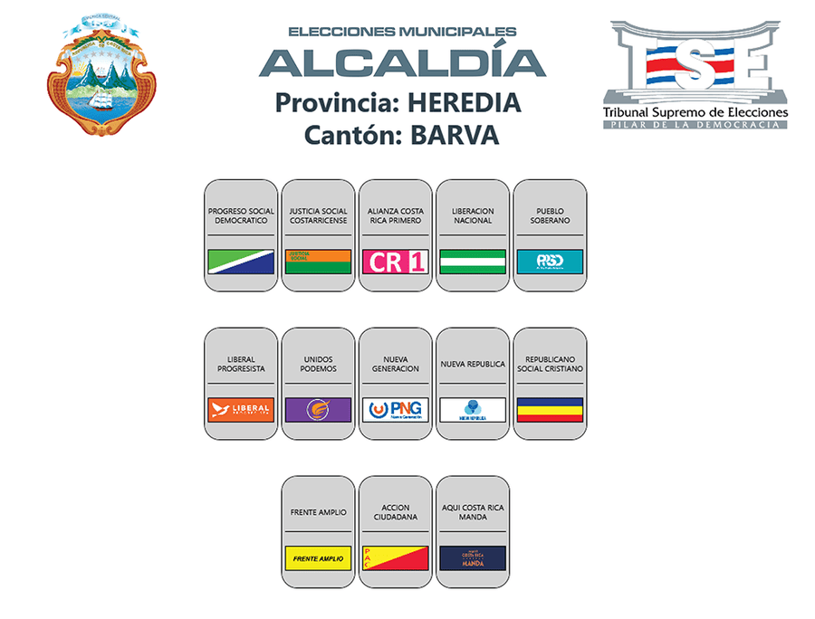 Esta es la distribución de los partidos políticos en las papeletas de los cantones de la provincia de Heredia, para las elecciones municipales 2024.