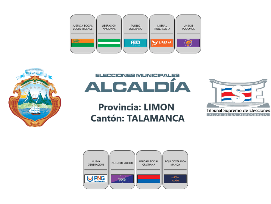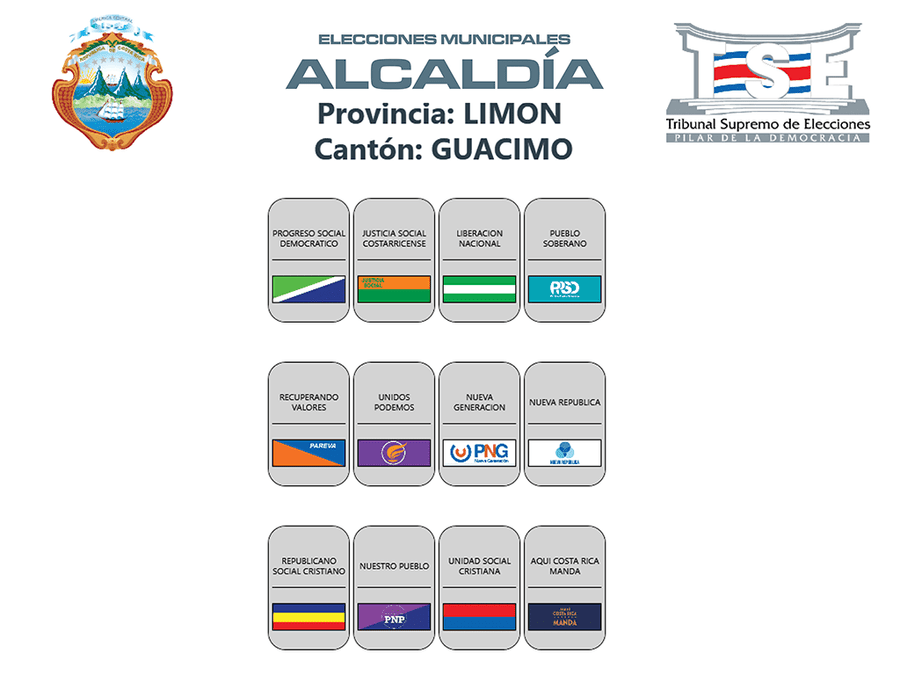 Esta es la distribución de los partidos políticos en las papeletas de los cantones de la provincia de Limón, para las elecciones municipales 2024.