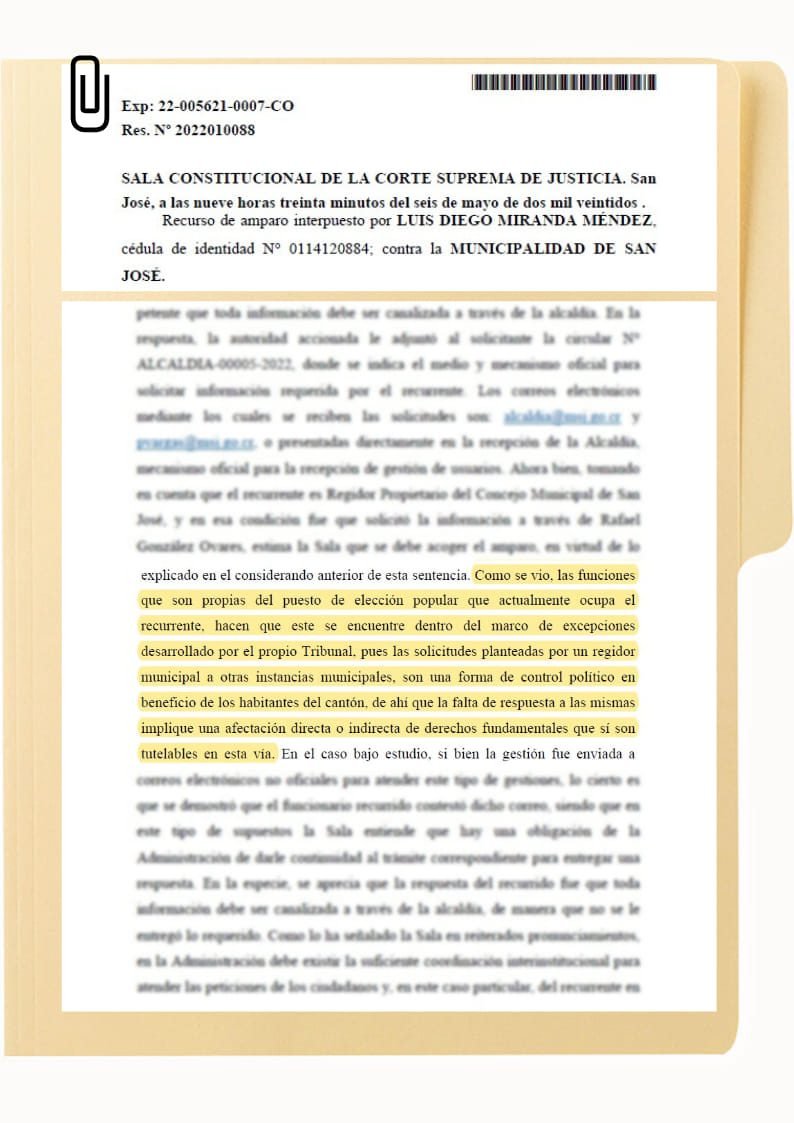 “Espero que esto además siente un precedente no solo dentro de la Municipalidad de San José sino para otras personas que desde los Concejos Municipales también buscan hacer control político y acceder a la información necesaria para ello”, concluyó.
