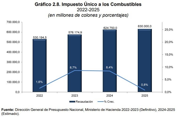 Debemos destacar que la recaudación por concepto de impuesto único crece año con año (a pesar de la incursión de vehículos eléctricos). En el 2022 se recaudaron ₡530 mil millones mientras que en el 2025 se estima recaudar ₡630 mil millones. No obstante, dicho incremento no se ve reflejado en las transferencias que por ley corresponden a las municipalidades, ya que en el 2025 se pretende transferir el mismo monto a los gobiernos locales que en el 2024 (₡119 mil millones).