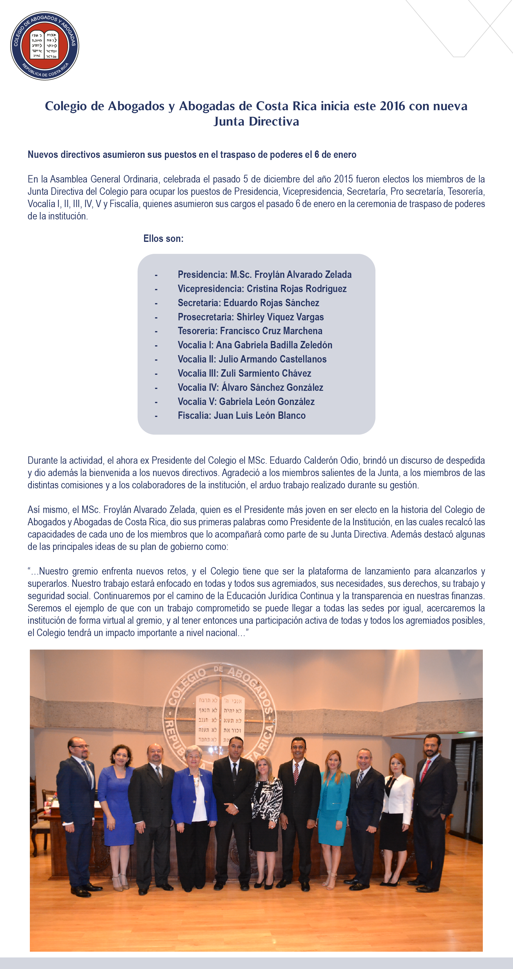 Fue así como convocó a la Asamblea Extraordinaria 1-2016 a efectuarse el pasado 18 de agosto de 2016 a las 5:00pm, lo que hizo a través de La Gaceta No. 149 del 4 y No. 150 del 05 ambos de agosto de 2016 y en algunos medios digitales (página de internet del Colegio y algunas redes sociales).