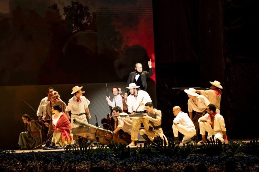 La puesta en escena tras de arrancar mal, lleva el extremo de la mentira a los pocos minutos cuando aparece en escena una carabela española y de ella descienden soldados que mas que soldados son asesinos, pues acaban con todos los indígenas de la primera escena. Esto no solo presenta la mentira central de la Leyenda Negra Española, sino que además al director de la obra teatral se le olvidó dejar siquiera uno de esos indígenas con vida, porque ¿de dónde proviene la población de América y de Costa Rica si no es de la mezcla de sangre entre indígenas y españoles?