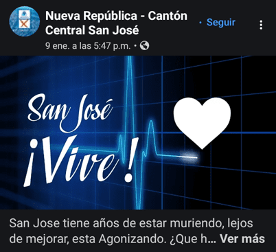 El Partido Nueva República, gestado en las entrañas de Restauración, ofrece a Tatiana Bonilla como futura alcaldesa de San José. Su “estrategia”, indignarnos de lo re-mal que está San José y de lo re-bien, lleno de vida, que estaría si su partido lidera la alcaldía. En un esfuerzo por restarle imagen al candidato del PLN, se busca claramente diferenciar a “ellos” de “nosotros.” El anuncio nos subestima como seres pensantes, no evidencia conocimiento de comunicación política del cuerpo, y pareciera, más bien, tomar elementos prestados de un anuncio de cardioaspirina. En lugar de llegar al corazón, nos llegaron a otra parte. Este spot, ahogado en dramatismo y basado en las deficiencias de los demás, revela, más bien, las carencias propias.