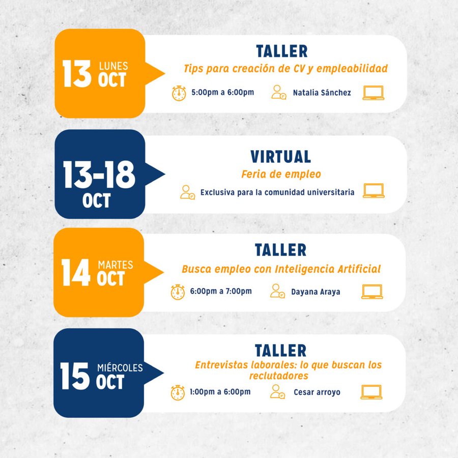 ● Lunes 13 de octubre: Reciba tips para la creación de su currículo y mejore su empleabilidad.
