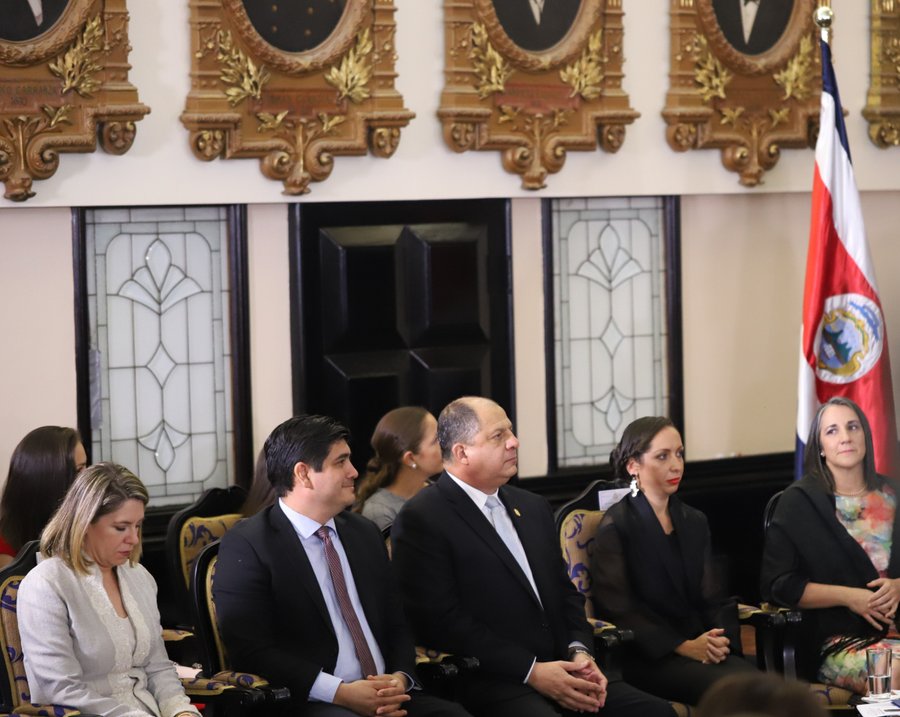 En el acto oficial estuvieron presentes el mandatario actual, Carlos Alvarado; la primera dama, Claudia Dobles; la exprimera dama Mercedes Peñas; la bancada oficialista y exdiputados; ministros y exministros de la Administración Solís Rivera.