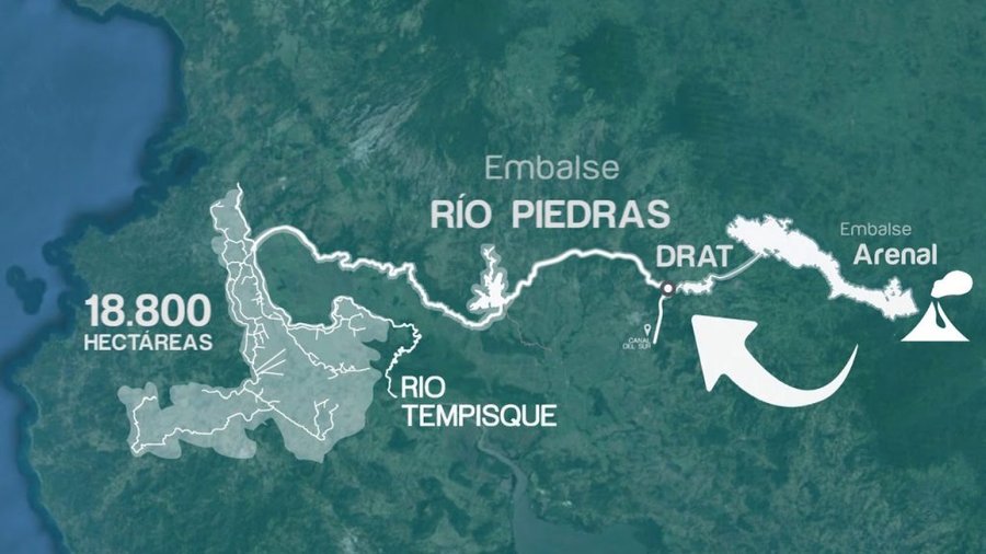 Dicha infraestructura consta de 300 nuevos kilómetros de canales en los cantones de Carrillo, Santa Cruz y Nicoya, incluye la construcción del embalse sobre el río Piedras con un espejo de agua de 850 hectáreas y la infraestructura en la presa para generar energía hidroeléctrica.