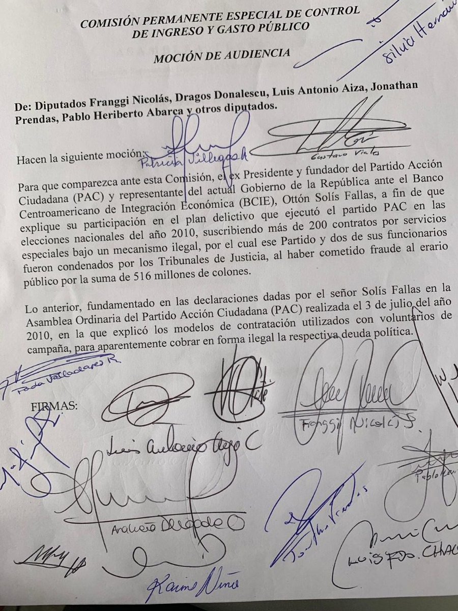 Asimismo se dio el visto bueno para que comparezca el presidente del BCIE, Ottón Solís, para que explique su presunta vinculación con los hechos delictivos aconetcidos en la campaña del 2010, donde era candidato presidencial.
