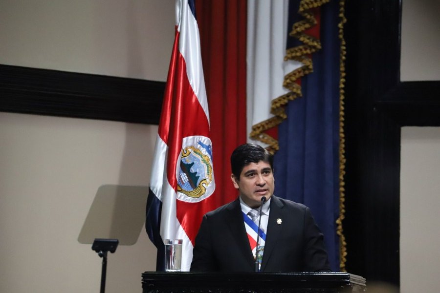 Alvarado comparece en estos momentos ante la Asamblea Legislativa frente a diputados, ministros, personal diplomático, jerarcas de la Iglesia Católica.