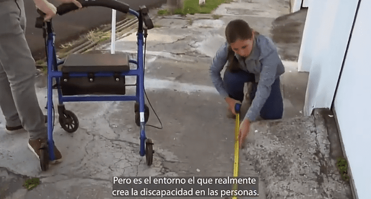 Captura de pantalla del Facebook de Marcel Soler. Candidata a vicealcaldesa midiendo una acera en un barrio de Montes de Oca.